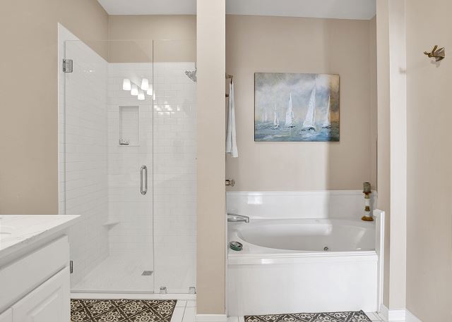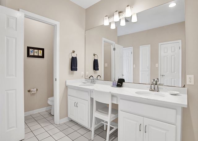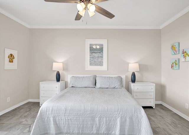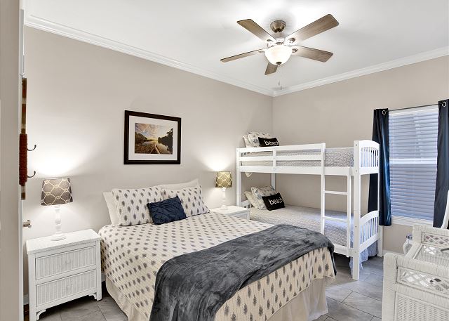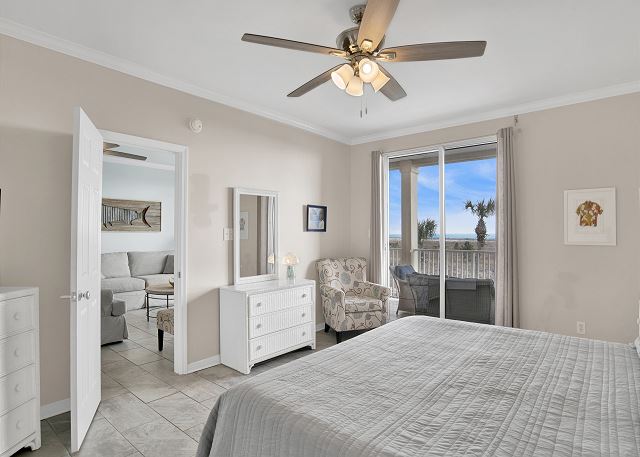 Unit has tile throughout King in Master King in 2nd bedroom Queen and a Twin bunk bed in 3rd bedroom Sleeps 8 Fully equipped Kitchen 2 Outdoor Pools Boardwalk to Beach Garden Tub Book now to enjoy a peaceful stay! This wonderful 3 Bedroom/3 Bath unit has tile throughout and is tastefully decorated. Each bedroom has its own attached bathroom, and the balcony provides an expansive view of the Gulf of Mexico! Book now to enjoy a peaceful stay!